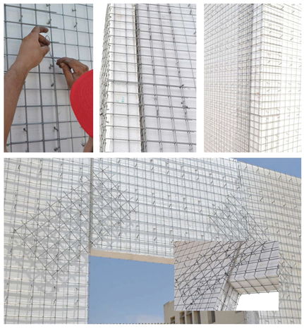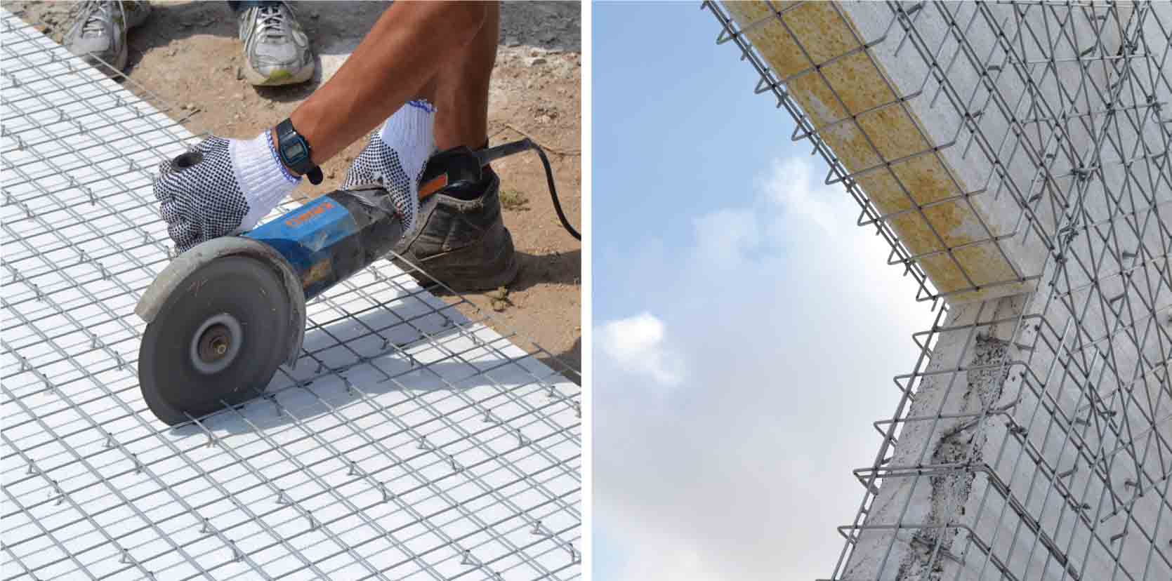 Openings for doors and windows can be easily cut on site to specific sizes as per details. Splice mesh is placed at each corner for consolidation. Extra rebars are to be included for large openings. To reduce wastage, the panels remaining from an opening can be easily used as filler panels in the wall segment.
